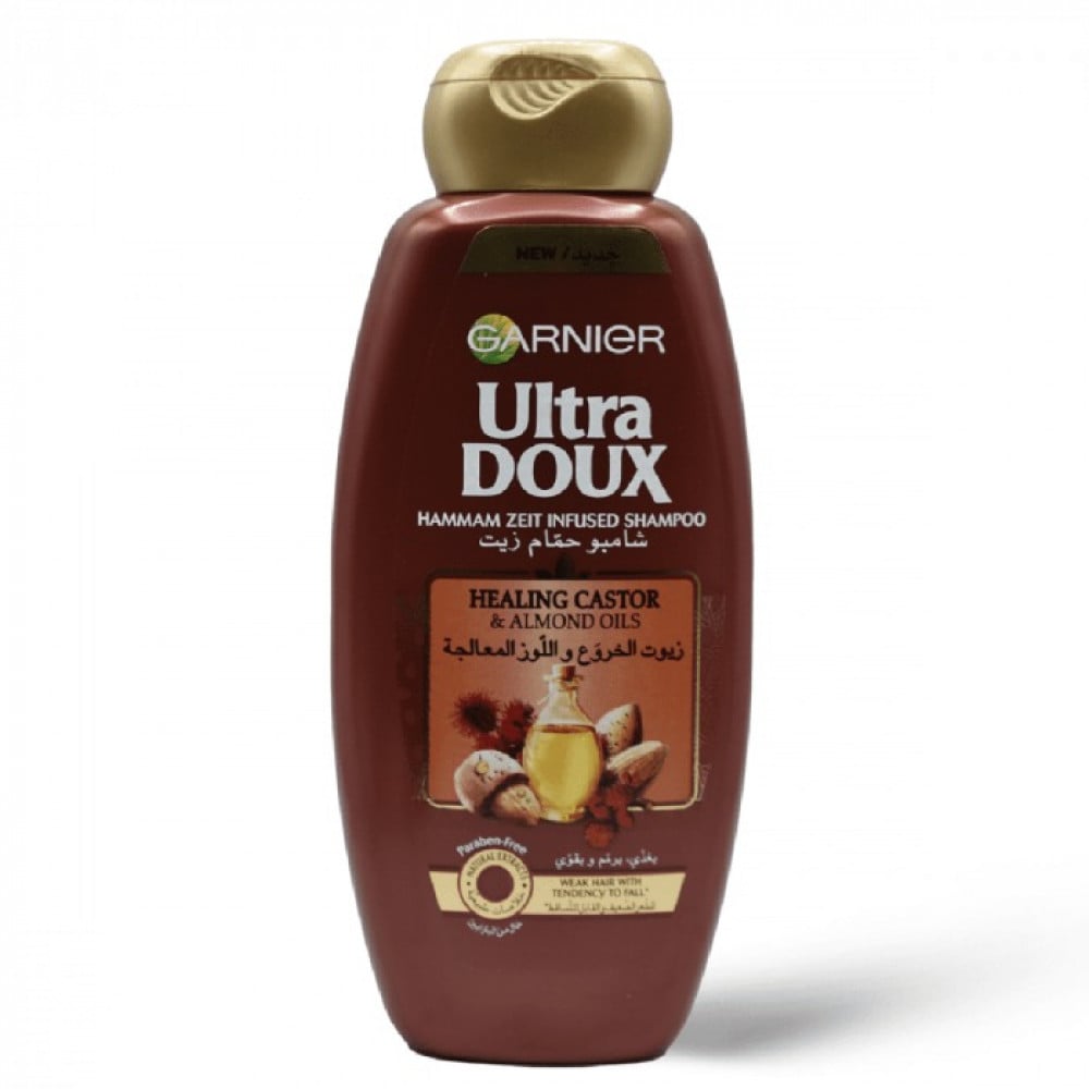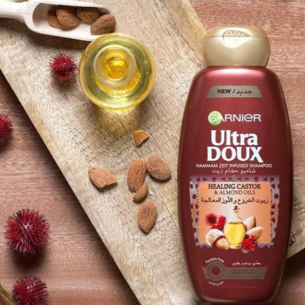 • جارنييه الترا دو شامبو زيوت الخروع و اللّوز المعالجة لترميم الشعر الضعيف و القابل للتساقط و المستوحاة من العادات الشرقية لحمام الزيت.